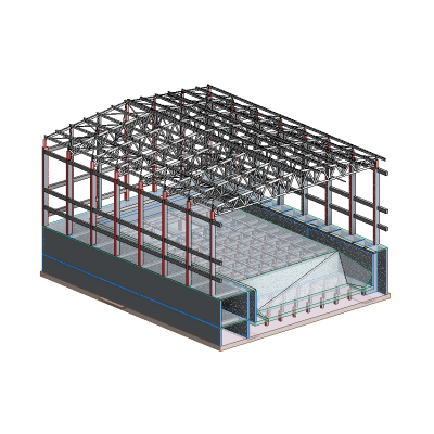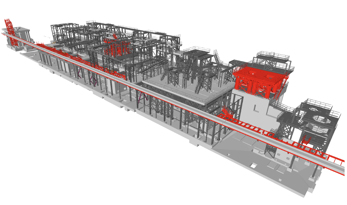 Железобетонные и металлические конструкции конвейерной галереи и вспомогательных сооружений для размещения и обслуживания оборудования.